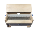 Dotata di una griglia calibrata per il passaggio delle api e un cassettino con rete inox, permette una raccolta selettiva senza danneggiare la colonia, garantendo igiene e aerazione del polline raccolto. Il tettino apribile agevola la manutenzione e il doppio foro laterale permette agli insetti di uscire facilmente, riducendo lo stress sull’alveare.